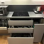 - ❓Is there a kitchen available at the apartment for guest use?Yes, the apartment is furnished with a mini-kitchen and offers an electric kettle, a refrigerator, and kitchenware as well.